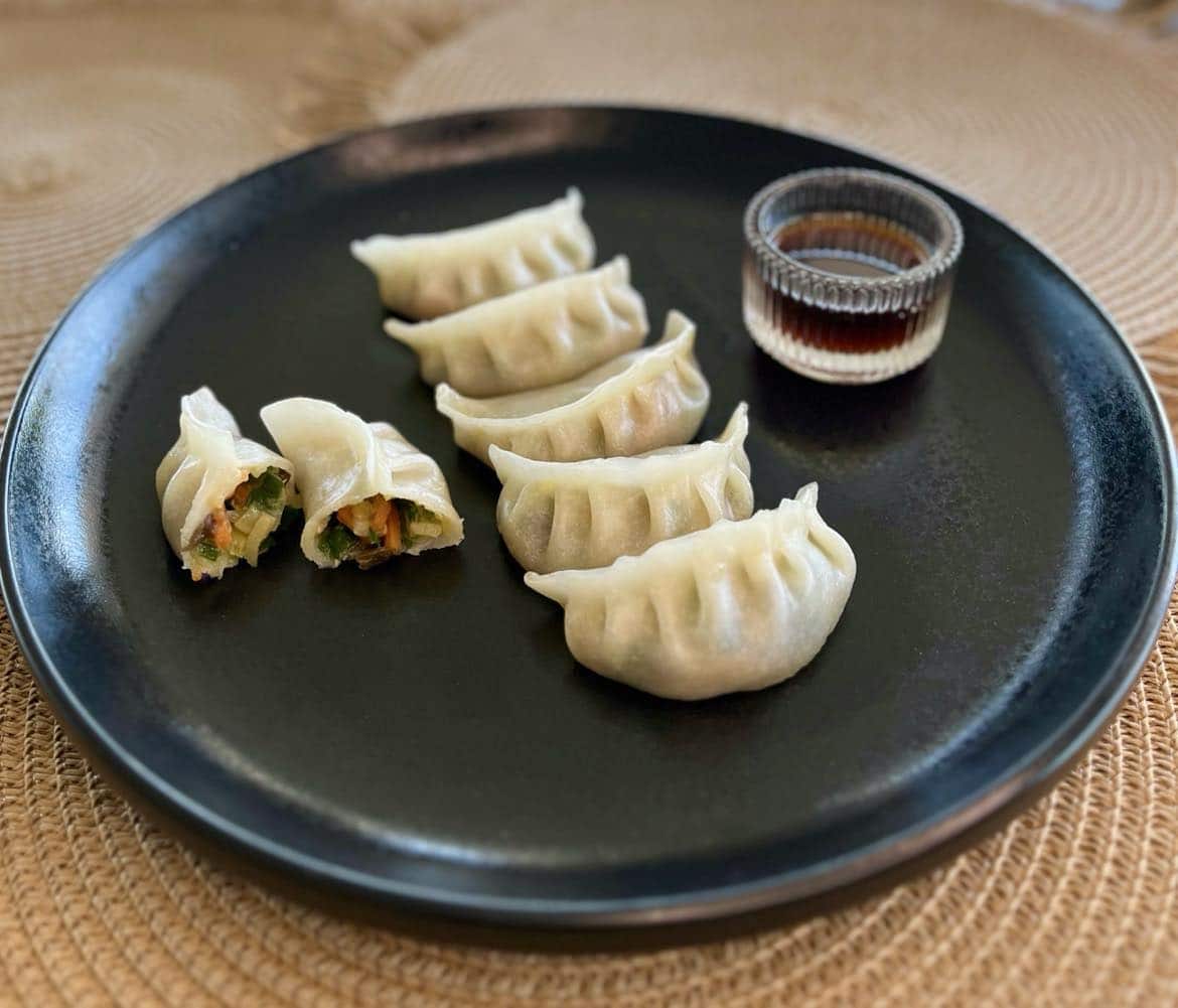 Delicate vegetarian gyozas made with a soft, white and thin wrapper, filled with a generous vegetable stuffing. Cabbage, yam and assorted vegetables blend together to deliver a light, fragrant and naturally indulgent bite.