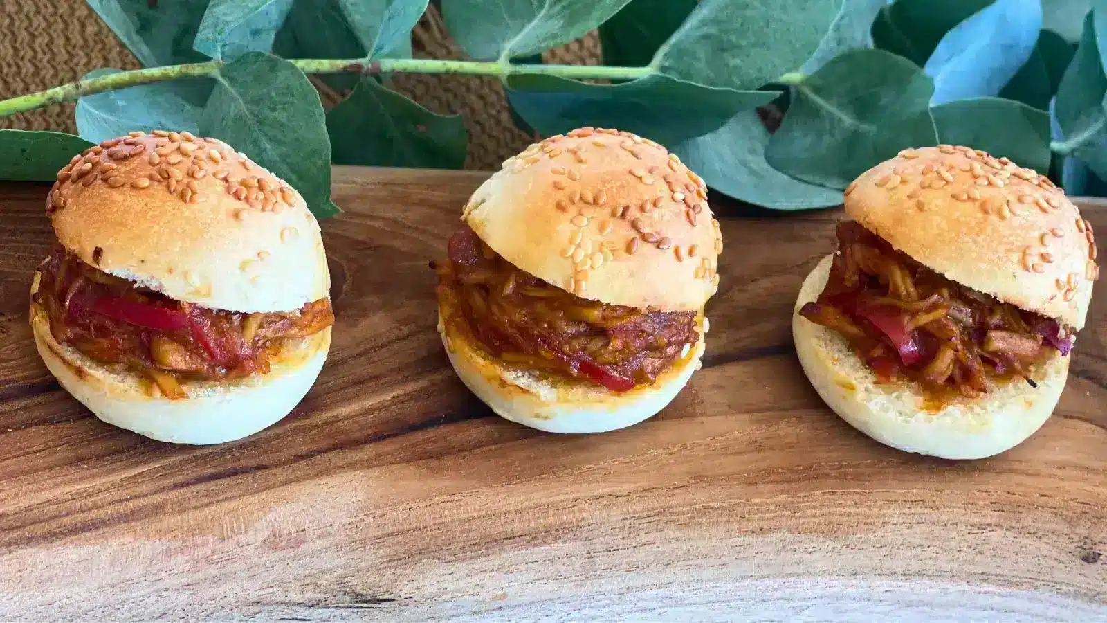 Preheat the oven to 180°C, place the frozen mini burgers on a baking tray lined with parchment paper and reheat for about 8 minutes, until the bun is soft and golden.