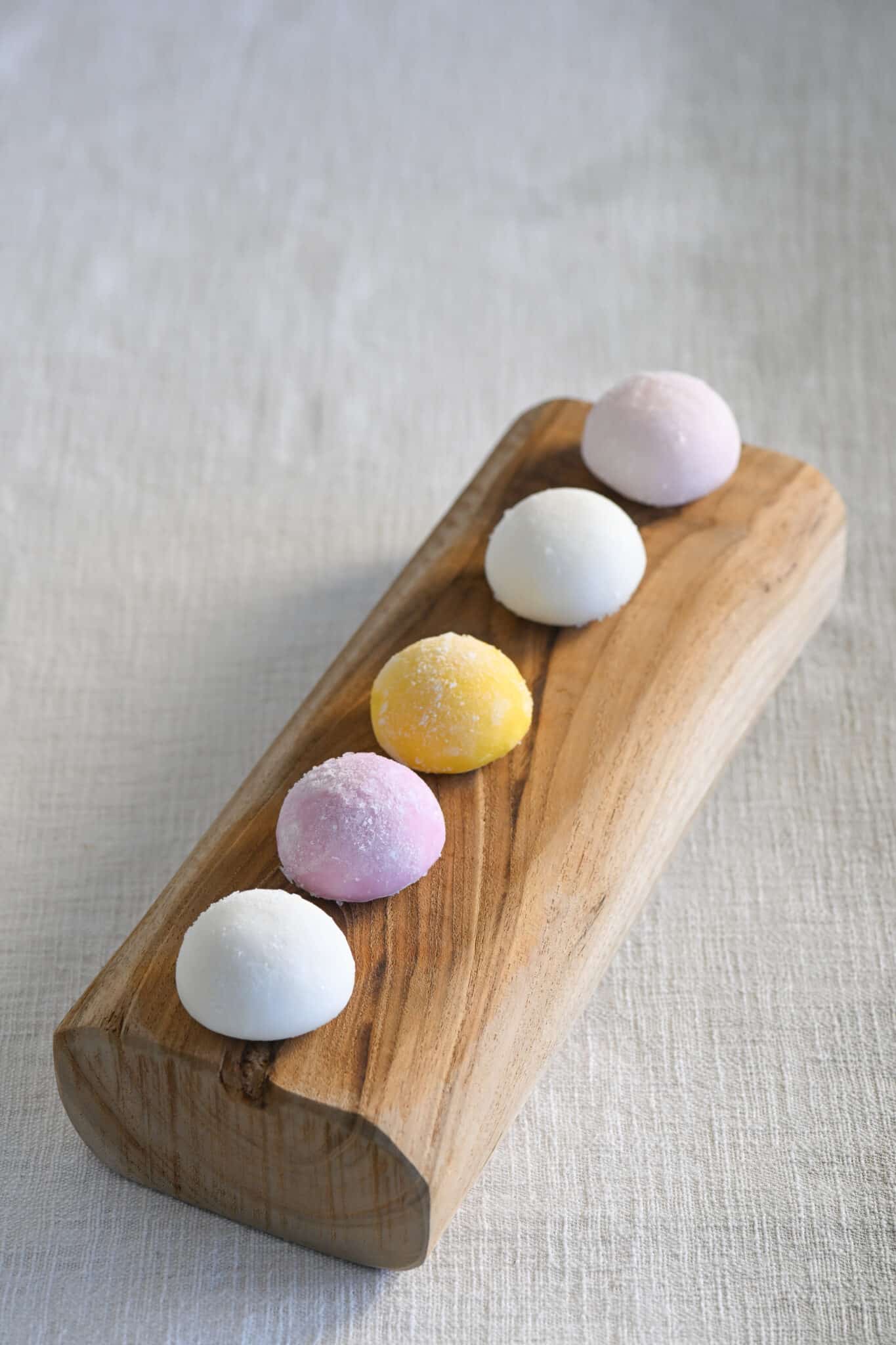 Dessert emblématique de la cuisine japonaise, le mochi glacé associe une préparation glacée à base de lait de coco à une fine pâte de riz aromatisée, pour une texture fondante et rafraîchissante.