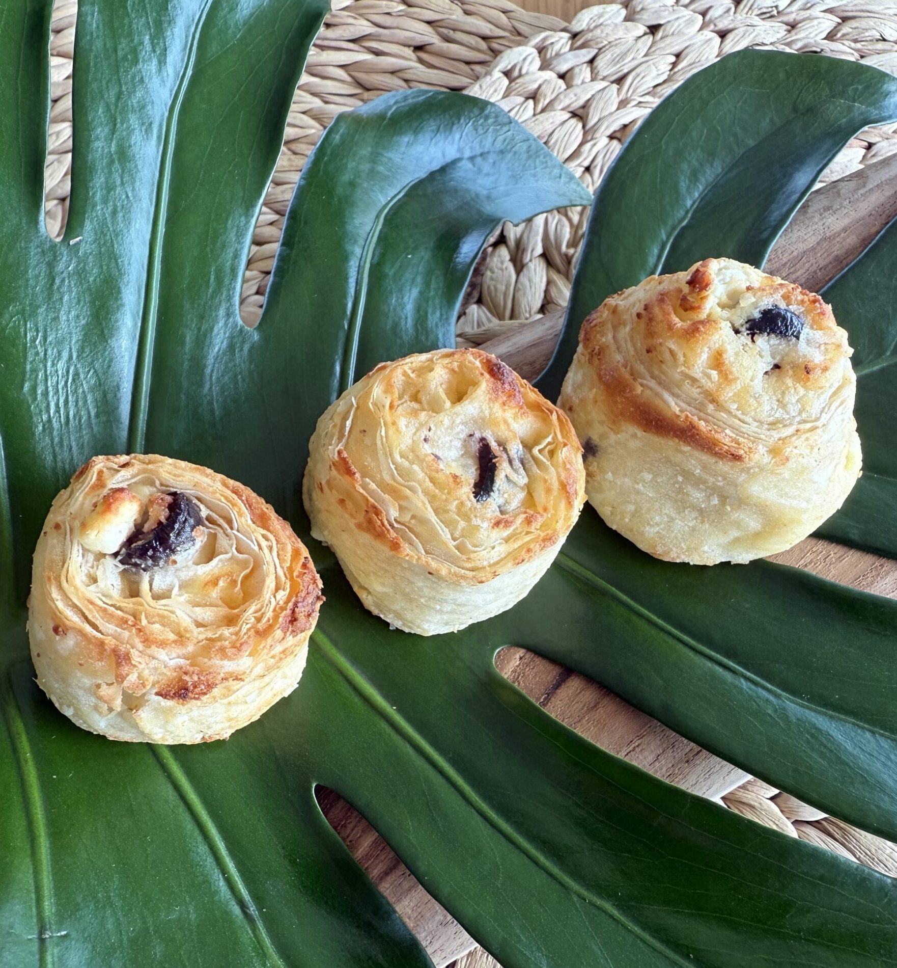 Ces mini feuilletés artisanaux en pâte filo dévoilent un savoureux mariage de fromage frais et d’olives, dans un format élégant et croustillant.